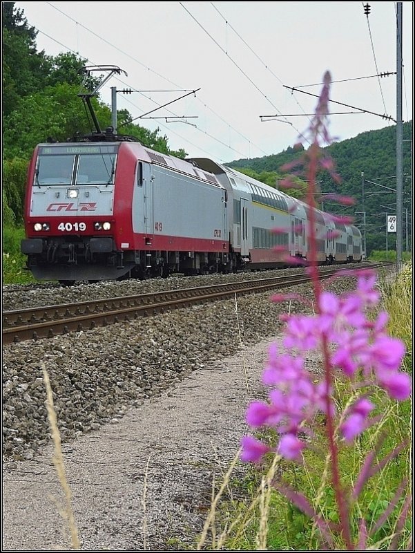 ein nettes Foto mit der 4019 und dem Schmalblättrigen Weidenröschen - auch wenn es neben einer Normalspurstrecke steht.